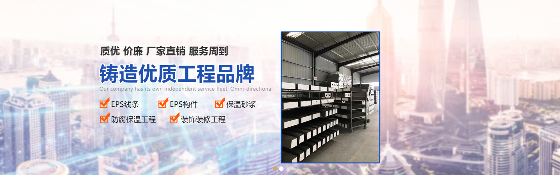 是一家專(zhuān)業(yè)生產(chǎn)各種型號(hào)的EPS線(xiàn)條、GRC線(xiàn)條、保溫砂漿,防腐保溫工程和裝飾裝修工程施工為主的高科技民營(yíng)企業(yè),專(zhuān)業(yè)致力于外墻保溫材料和外墻裝飾線(xiàn)條的生產(chǎn)和施工工程;